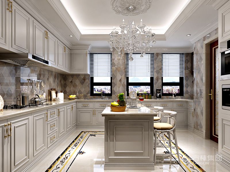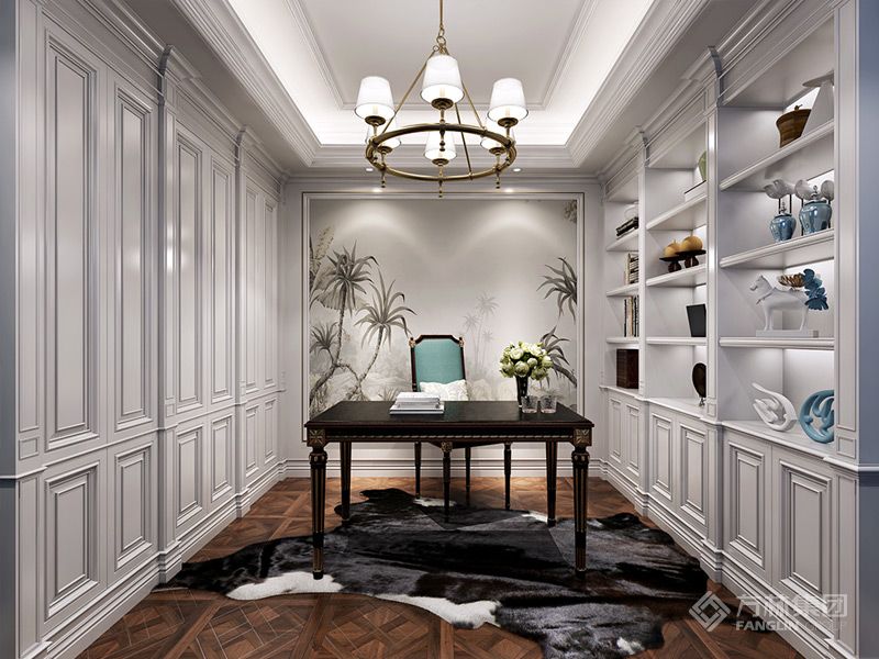 西安国金华府装修案例效果图,220平美式,灯具和饰品类用金属元素作为点缀,可以更好的提升空间的质感, 没有太多造作的修饰与约束,不经意中也成就了另外一种休闲式浪漫。