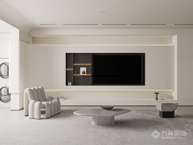 在设计上,注重空 间的简洁和纯净,以淡奶油色系为基调,搭配自然材质和柔和 的灯光,营造出舒适、宜居的氛围。在空间布局上, 注重简洁、通透和流畅,避免过度繁复的装饰和细节。在空间设计中, 注重引入自然元素和光线,通过大面积的窗户和自然采光,让 室内空间与自然环境相互融合。