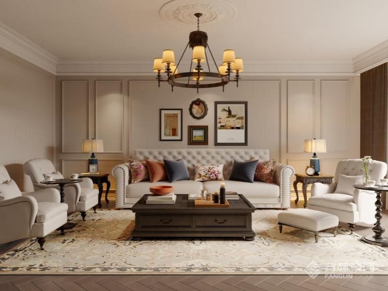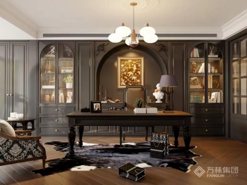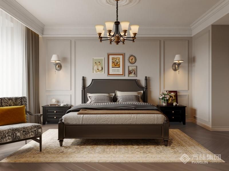 电视墙巧妙利用墙板造型,将次卧房门隐藏其中。书架打破对称的呆板,也让平常扔的杂乱无章的绘本童话书有了栖居之地