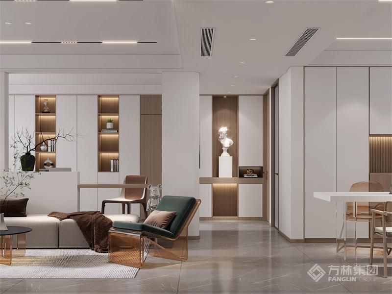 在设计上,注重空 间的简洁和纯净,以淡奶油色系为基调,搭配自然材质和柔和 的灯光,营造出舒适、宜居的氛围。在空间布局上, 注重简洁、通透和流畅,避免过度繁复的装饰和细节。在空间设计中, 注重引入自然元素和光线,通过大面积的窗户和自然采光,让 室内空间与自然环境相互融合。