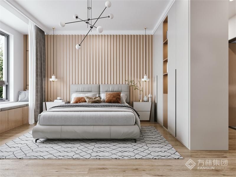 卧室避开传统的装饰搭配 使用的墙面造型 不占空间 美观好看 飘窗设计增加使用空间及休闲区