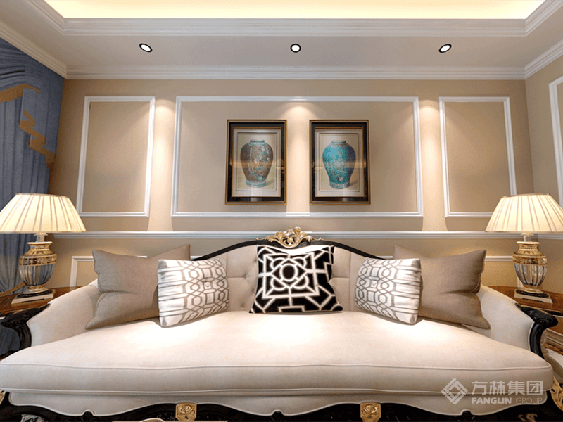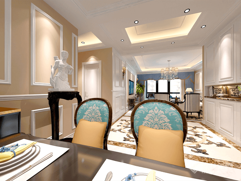 设计师根据业主的需求,以及生活习惯,对整个空间的布局进行了重构,在满足客户喜欢美式线条的基础上的同时,在色调上做了调整,做成美式偏现代一点的风格,会更时尚、经久耐看有格调;整体空间选用的都是比较柔和的配色,营造具有统一感的空间氛围;
